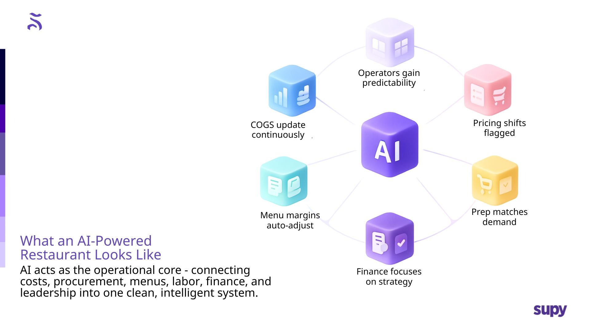 Supy does not replace operational expertise - it strengthens it by transforming fragmented, manual workflows into structured, intelligent systems capable of supporting modern AI-driven decision-making.