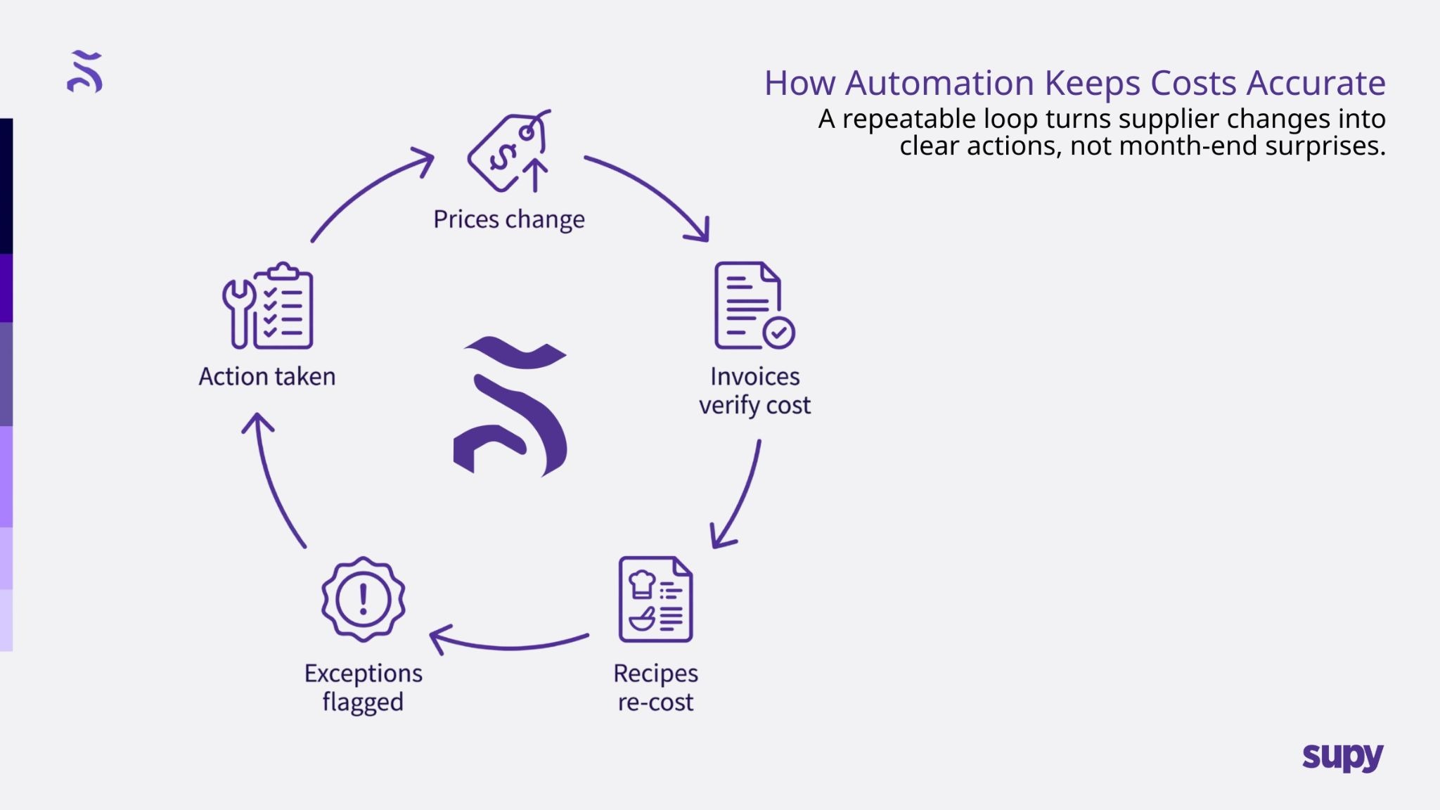 That’s where Supy comes in. By automating food costing and connecting it to invoice-verified prices, inventory movement, and operational variance, Supy reduces manual work and makes food cost control easier to maintain as you grow.