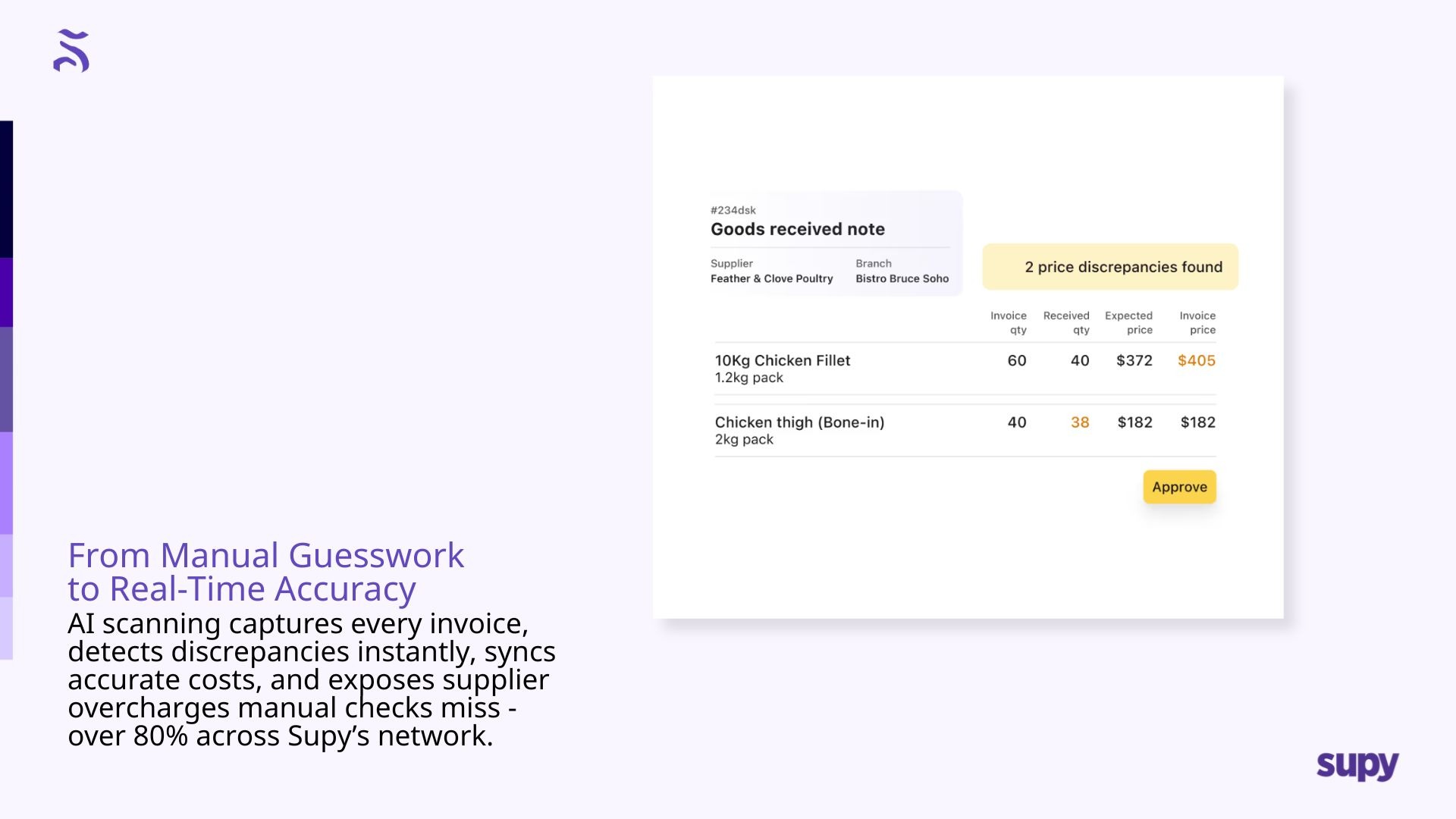 Most teams never notice - because who manually checks hundreds of line items across multiple suppliers for every delivery? Even a small 1- 3% variance can massively distort your COGS at scale, quietly eroding profitability week after week.