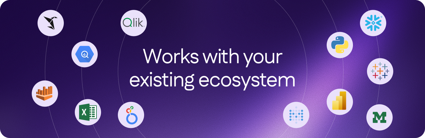 Share with anyone on any platform - Snowflake, AWS, Python, or Excel - without them needing your tech stack.