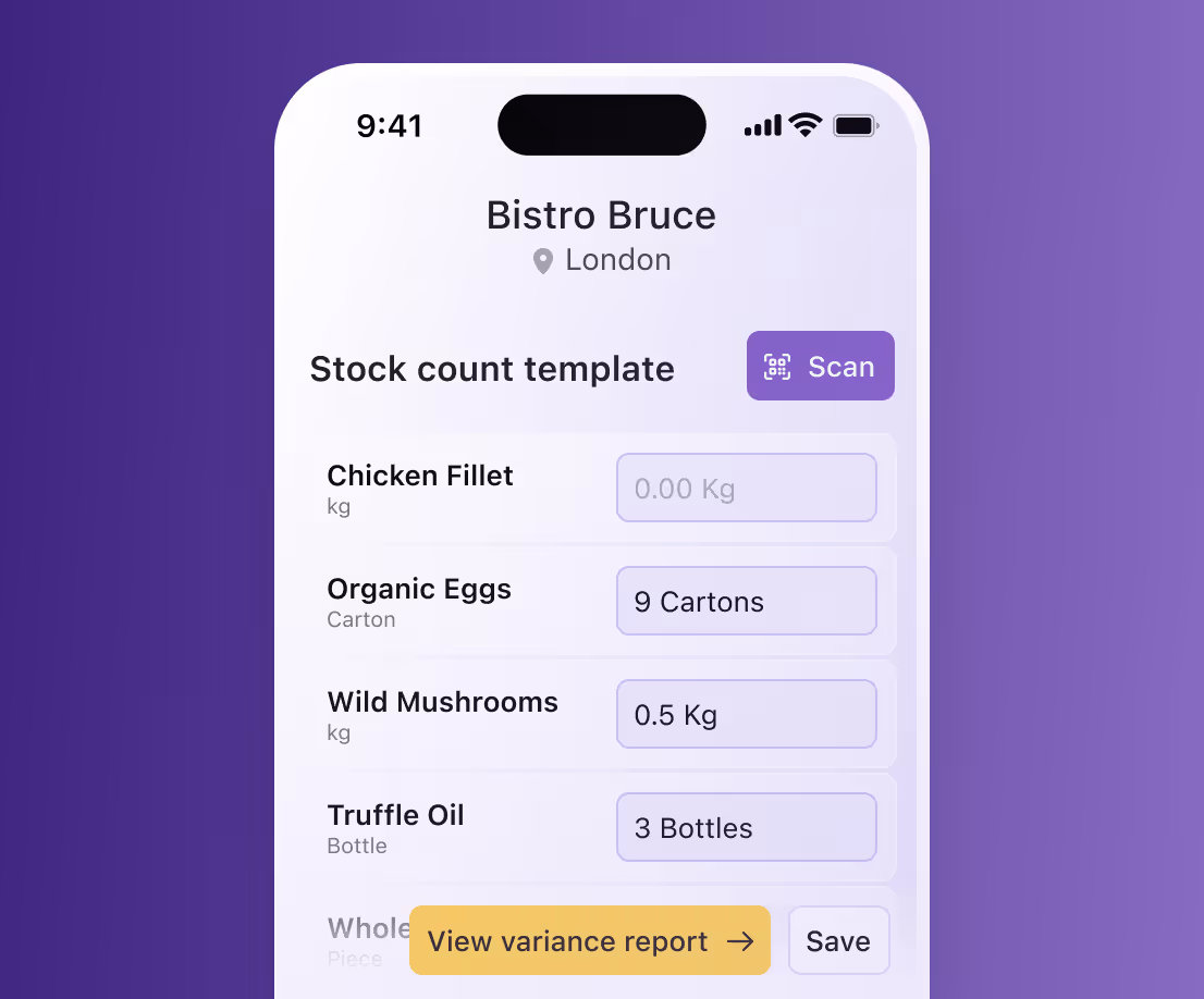Yes. Teams can perform counts, raise POs, and record wastage directly from the Supy mobile app (iOS & Android). Barcode scanning, templates, and instant variance updates make it easy for bar and kitchen teams to stay accurate — even after hours.