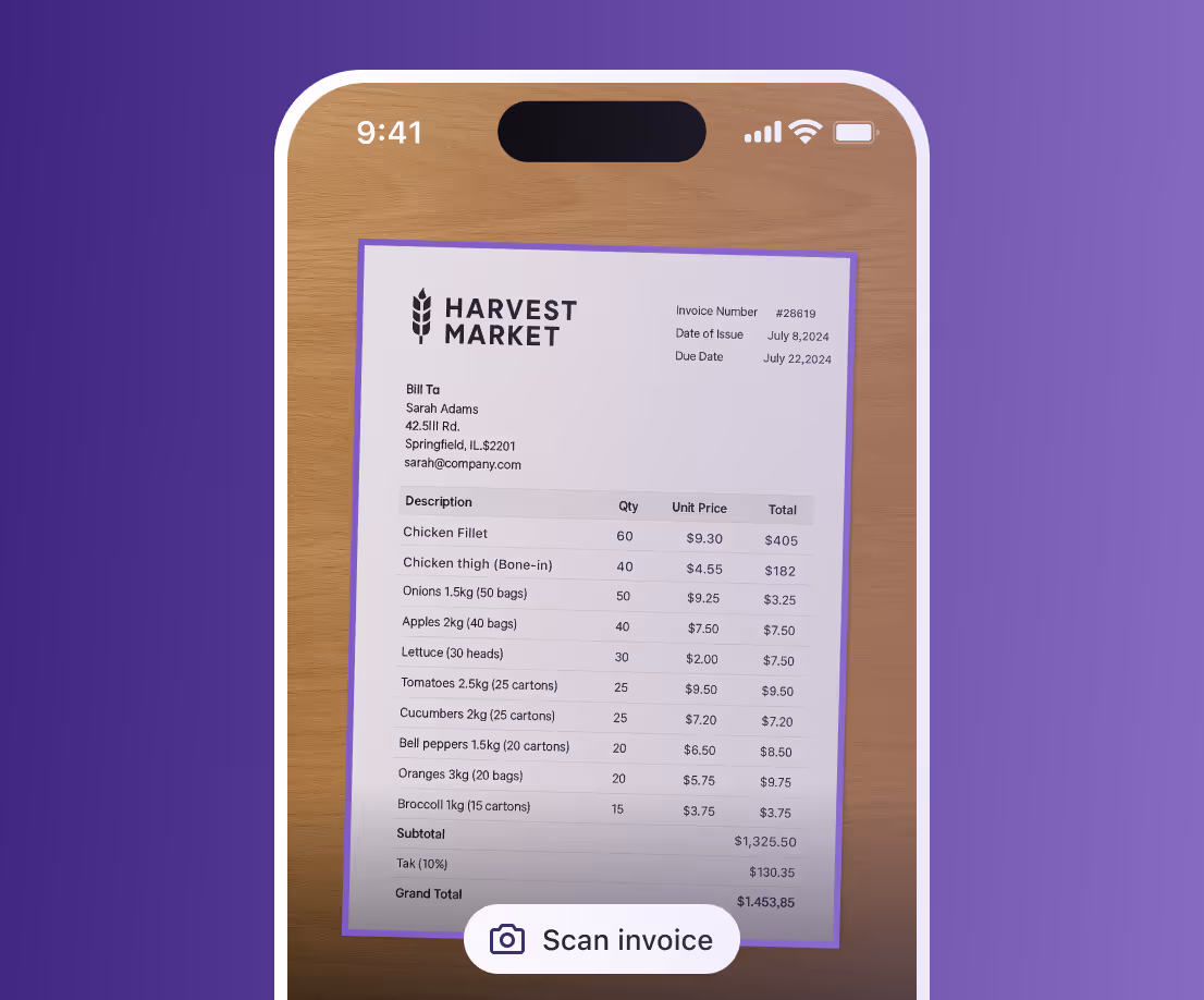 Supy centralises supplier data, automates purchase orders, and validates invoices using AI. Price changes, shortages, and overcharges are flagged automatically, while credit-note requests can be generated in one click - saving hours of admin per week.