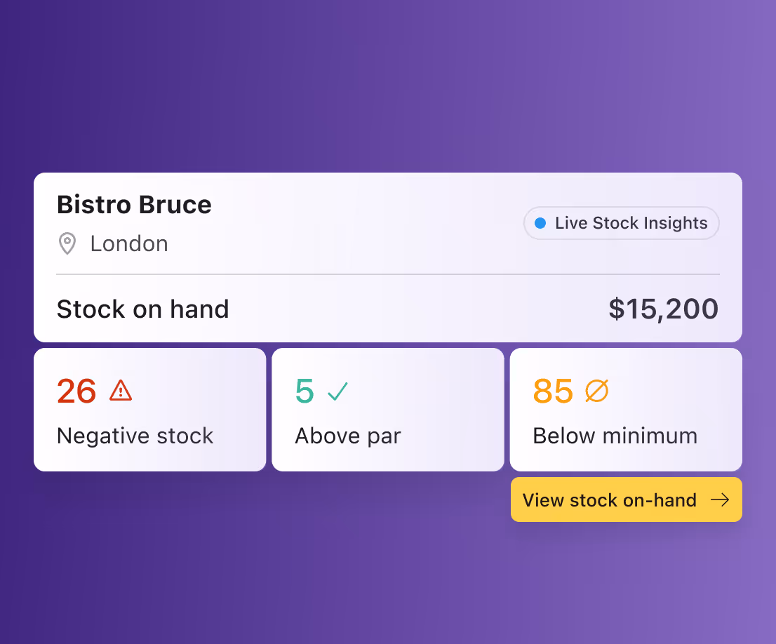 Monitor your stock across every location, stay aware of quantities and costs, and make informed decisions using real-time data.